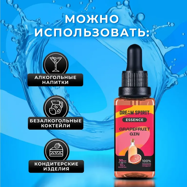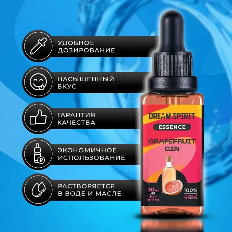 Представляем вам новинку в нашей линейке – эссенцию Dream Spirit "Грейпфрутовый Джин/Grapefruit Gin"! Этот захватывающий микс предлагает вашим напиткам превосходное сочетание аромата можжевельника, бодрящей терпкости разнообразных трав и освежающей сочности грейпфрута. Просто добавьте несколько капель Dream Spirit "Грейпфрутовый Джин/Grapefruit Gin" в ваш любимый спиртной напиток, чтобы придать ему прославленный характер лондонского сухого джина, обогащенного яркими цитрусовыми оттенками. Кроме того, напитки, приготовленные с использованием эссенции Dream Spirit "Грейпфрутовый Джин/Grapefruit Gin", идеально подойдут в качестве основы для известных коктейлей, таких как «Джин-Тоник», «Том Коллинз», «Авиация» и других.