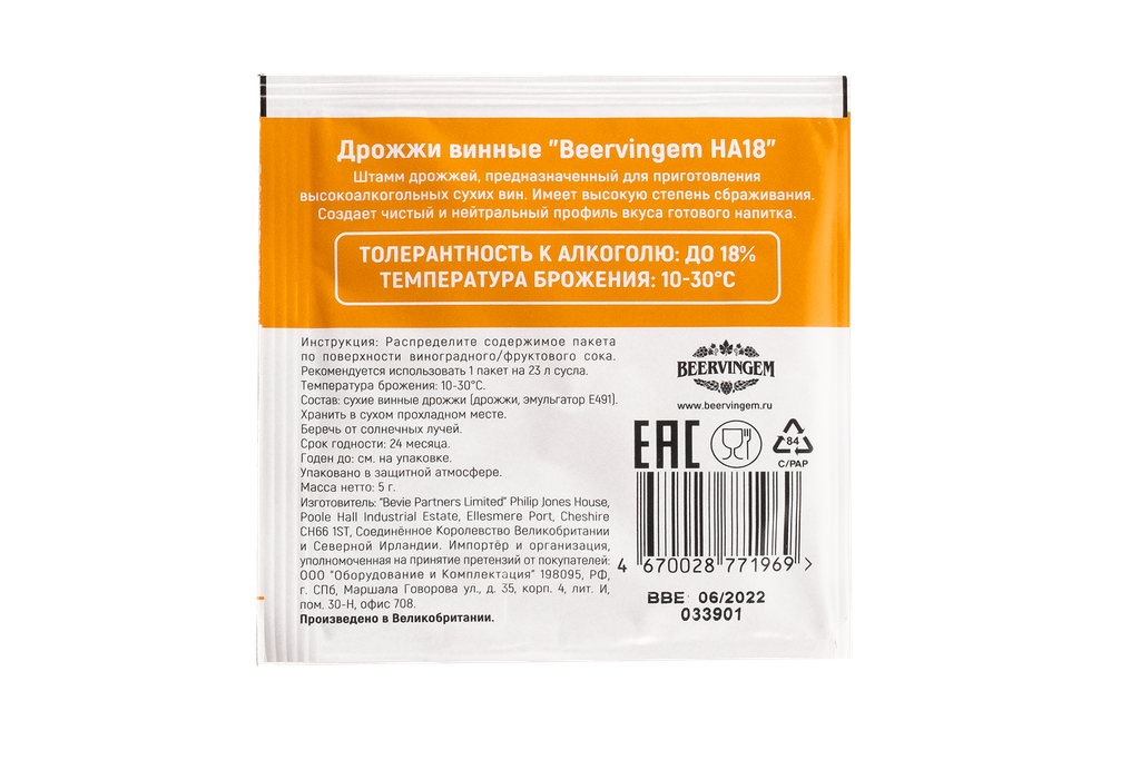 Штамм дрожжей предназначен для приготовления высокоалкогольных вин.