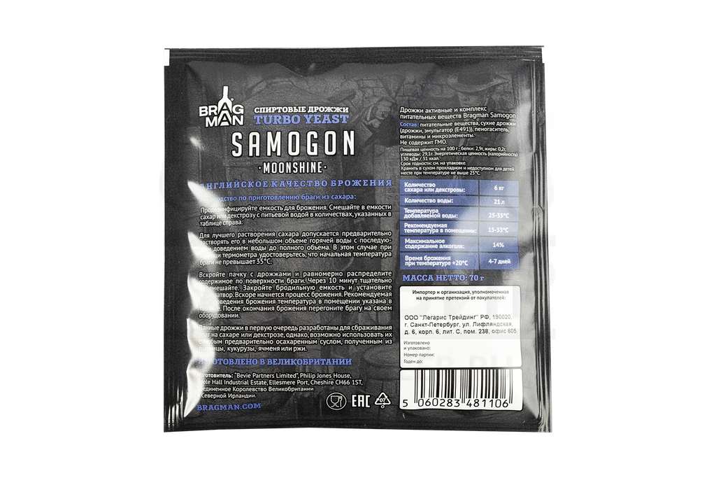 Спиртовые дрожжи Bragman Samogon 70 гр.