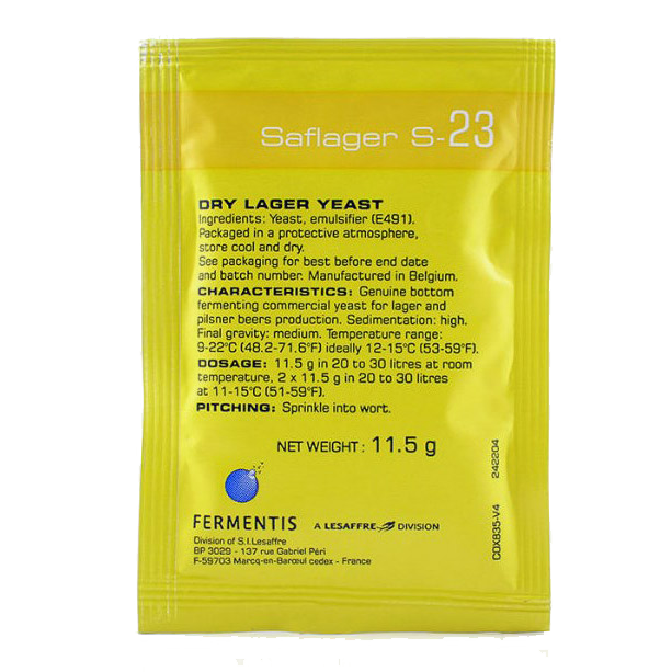 Дрожжи для пива Saflager S-23 - это штамм низового брожения происходит из Берлинского научно-исследовательского института пивоварения VLB, в котором он известен под названием RH. Он в частности используется в промышленном производстве в Западной Европе. Эти дрожжи позволяют получить фруктовые и эфирные Пилсы.