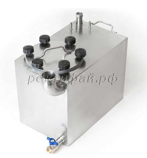 Есть подрывной клапан, трубка для манометра, гильза для термометра. Между кубом и крышкой - уплотнитель из пищевого силикона.