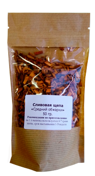 Сливовая щепа имеет средний уровень обжига (обжарки), что при настаивании придаст дистилляту необходимый приятный цвет и благородный вкус. Отлично подходит для настаивания фруктовых дистиллятов.