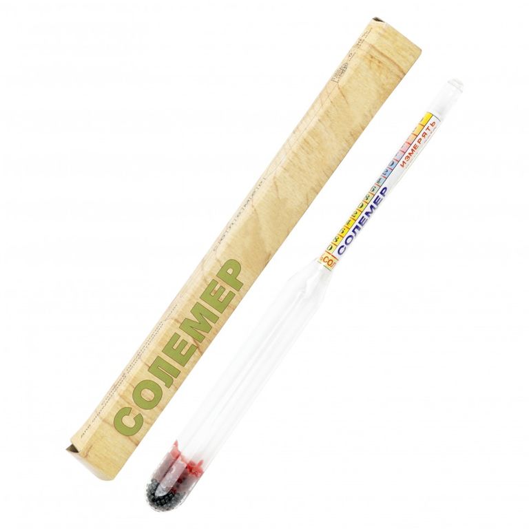 Ареометр солемер предназначен для измерения количества поваренной соли (NaCl) в водных растворах. 0-30%. Используется при консервации овощей, фруктов, приготовления раствора для домашнего сыра, при засолке мяса или рыбы, в рассолах. Незаменимая вещь в домашней кулинарии. Солемер показывает количество поваренной соли в воде в процентах по массе сухих веществ.